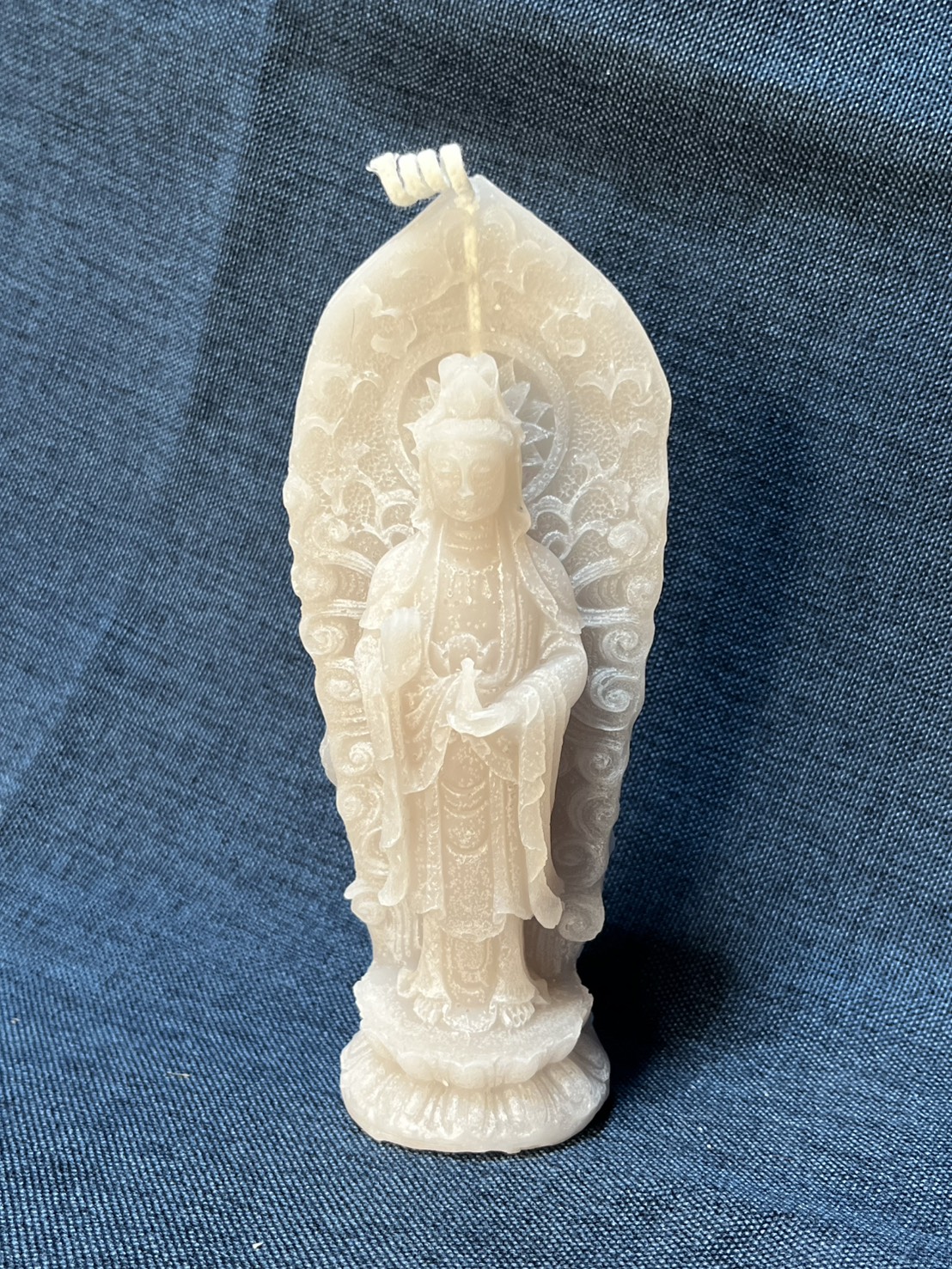 こちらは、聖観世音菩薩様の立像をかたどった蝋燭のセットです。